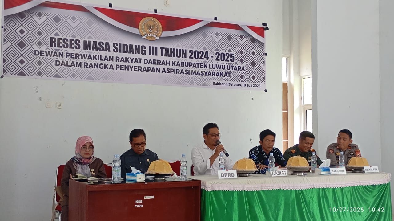 LUTRA – Dewan Perwakilan Rakyat Daerah (DPRD) Kabupaten Luwu Utara dari Daerah Pemilihan (Dapil) V melaksanakan kegiatan Reses Masa Sidang III Tahun 2024 – 2025 di Kantor Kecamatan Sabbang Selatan (Sabsel), Kamis (10/7/2025) kemarin.