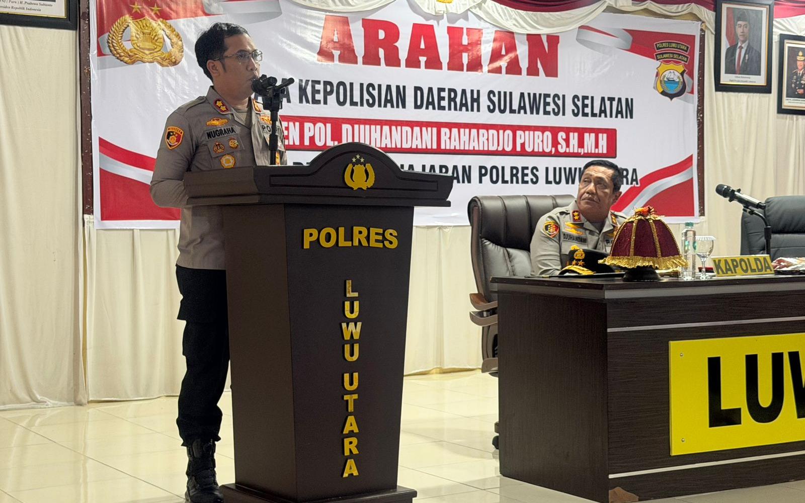 Nugraha mengucapkan selamat datang kepada Kapolda Sulawesi Selatan Irjen Pol. Djuhandani Rahardjo Puro, S.H., M.H, beserta jajaran Polda Sulsel di wilayah Luwu Utara.