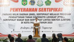 Pj Wali Kota Palopo Hadiri Penyerahan Sertipikat BMD, PTSL, Wakaf dan Lintas Sektor Tahun 2025