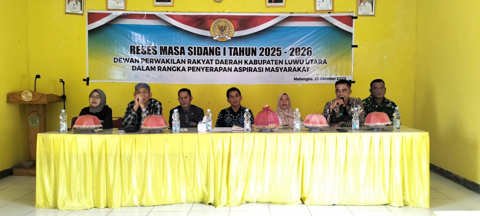 LUWU UTARA — Dewan Perwakilan Rakyat Daerah ( DRPD) Kabupaten Luwu Utara melaksanakan Reses masa sidang I tahun 2025-2026, dalam rangka menyerap aspirasi masyarakat, di Aula Kantor Camat Malangke, Kamis (23/10/2025).