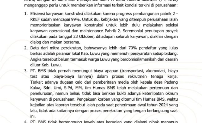 BMS Klarifikasi Isu PHK Massal, Pastikan Rekrutmen Bersih dari Calo